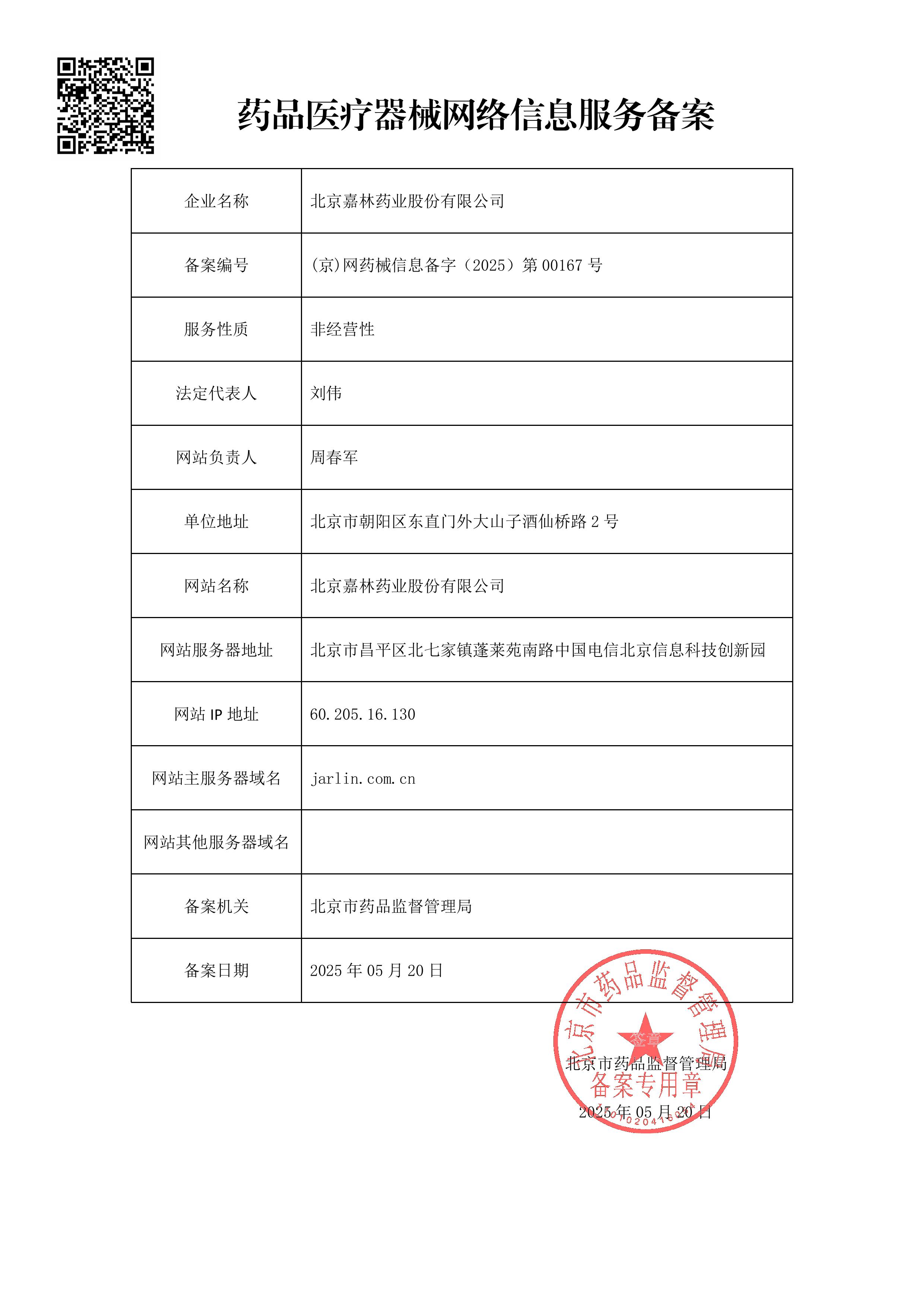 (京)網(wǎng)藥械信息備字(2025)第 00167 號